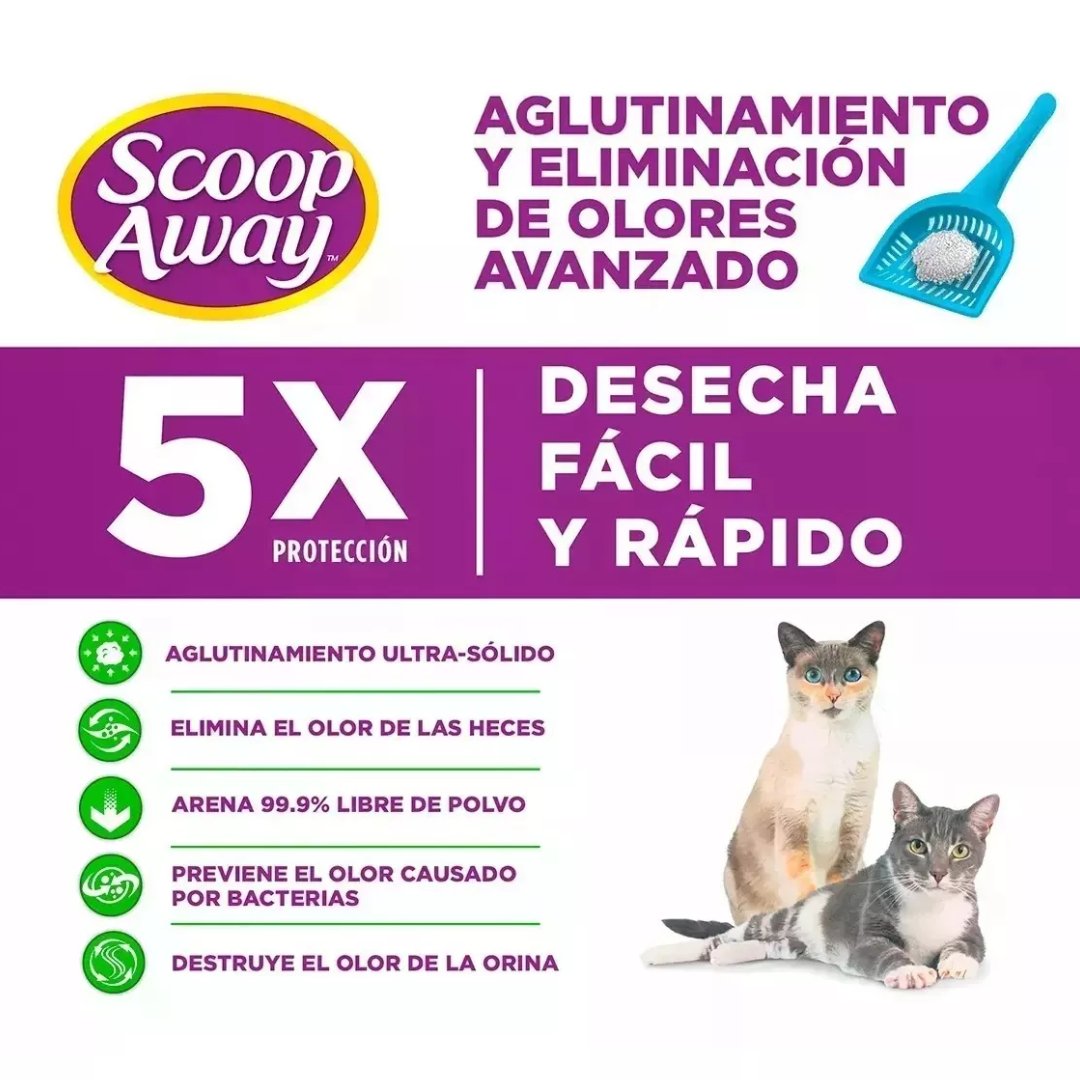 Scoop Away Arena Anti Olores Para Gatos, Aroma Fresco y Limpio 99.9% Libre De Polvo / 19 Kg