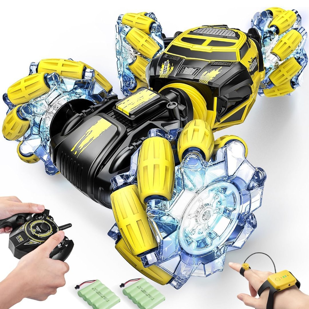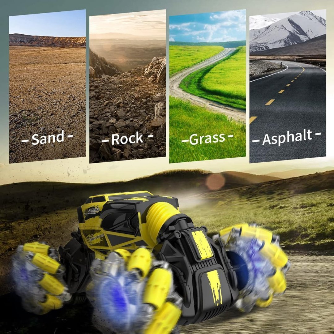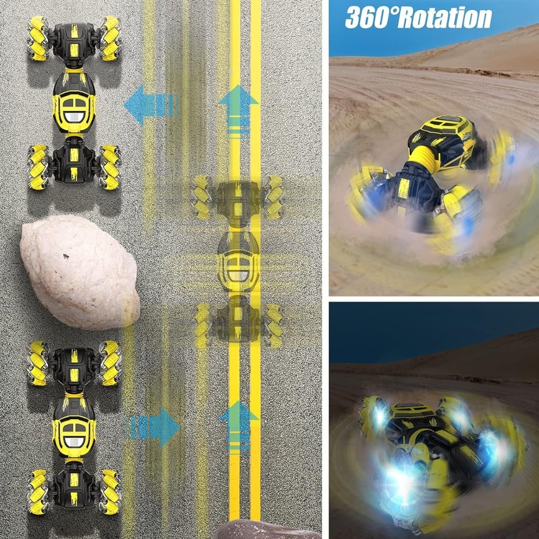 Auto De Acrobacias Con Control Remoto RC Con Reloj Controlado A Mano, Camión De Detección De Auto Rastreador 360° LED 1/16 4WD 12.5MPH / Color Amarillo