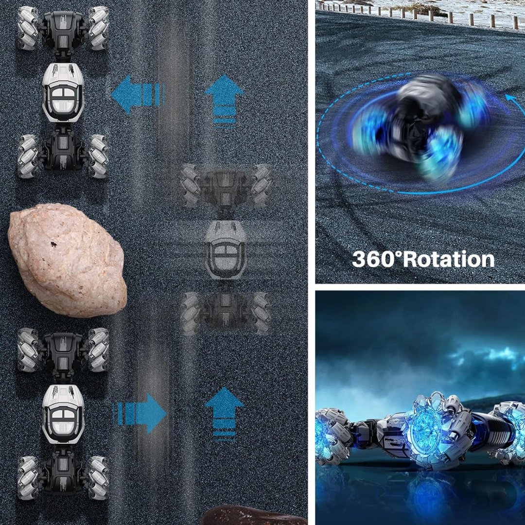 Auto De Acrobacias Con Control Remoto RC Con Reloj Controlado A Mano, Camión De Detección De Auto Rastreador 360° LED 1/16 4WD 12.5MPH / Color Gris
