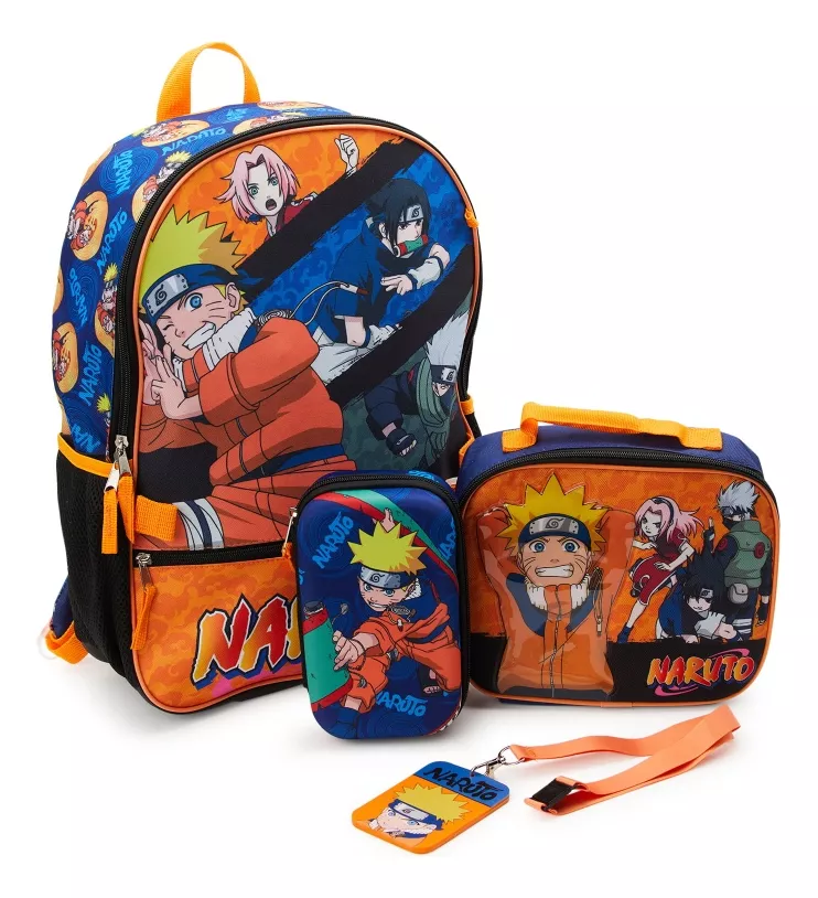 Bolso Escolar, Lonchera y Cartuchera Naruto Shippuden Squad 17″ / 4 Piezas
