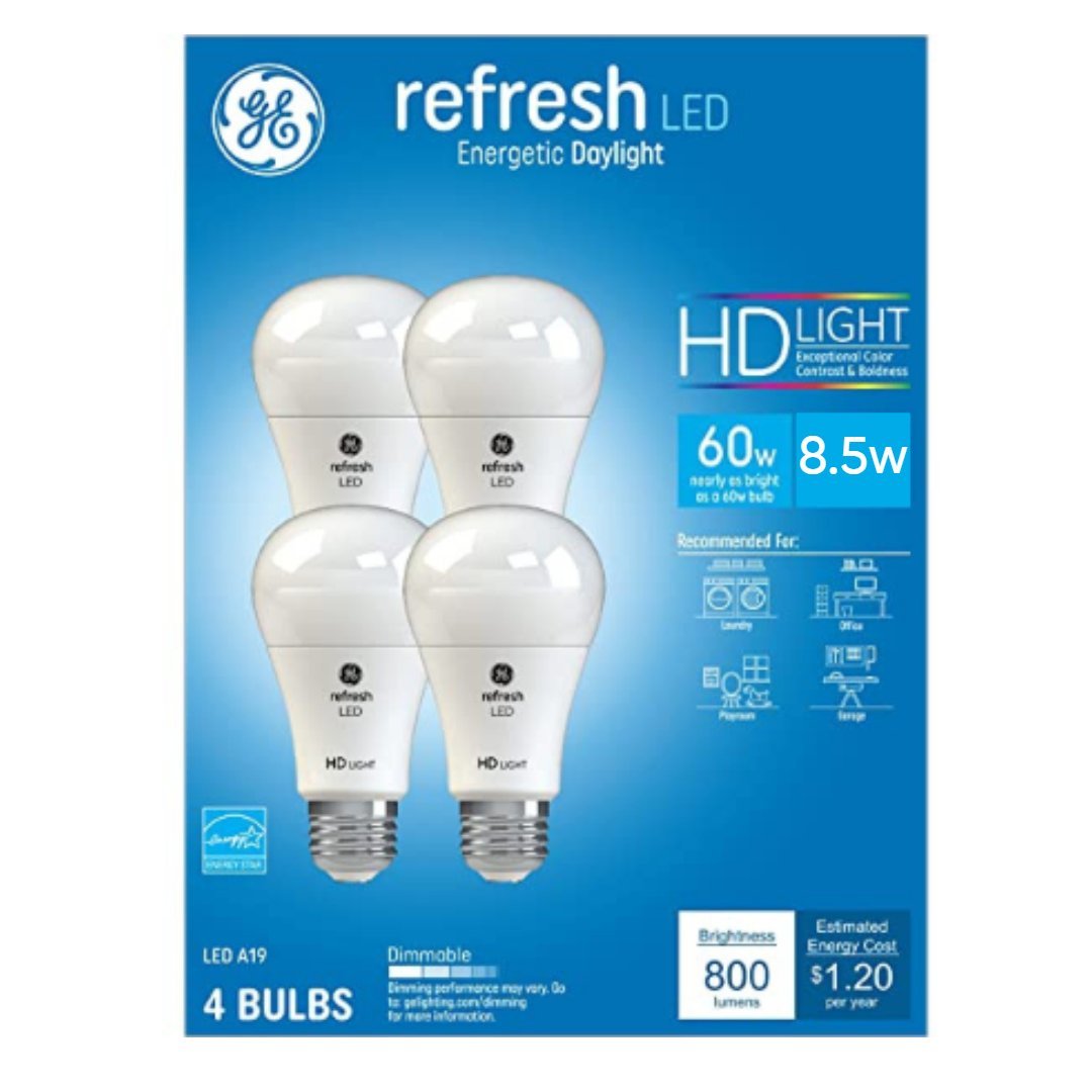 Bombillos Refresh LED De Luz Diurna GE / 60 W / HD Light / A19 De Uso General – 800 Lúmenes / 4 Pack