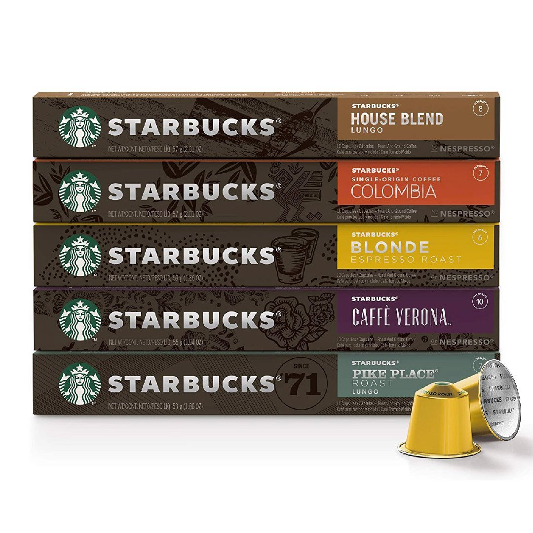 - Variedad de los favoritos de Starbucks Nespresso: Blonde Espresso Roast, House Blend, Single Origin Colombia, Pike Place Roast, Caffè Verona y Espresso Roast.