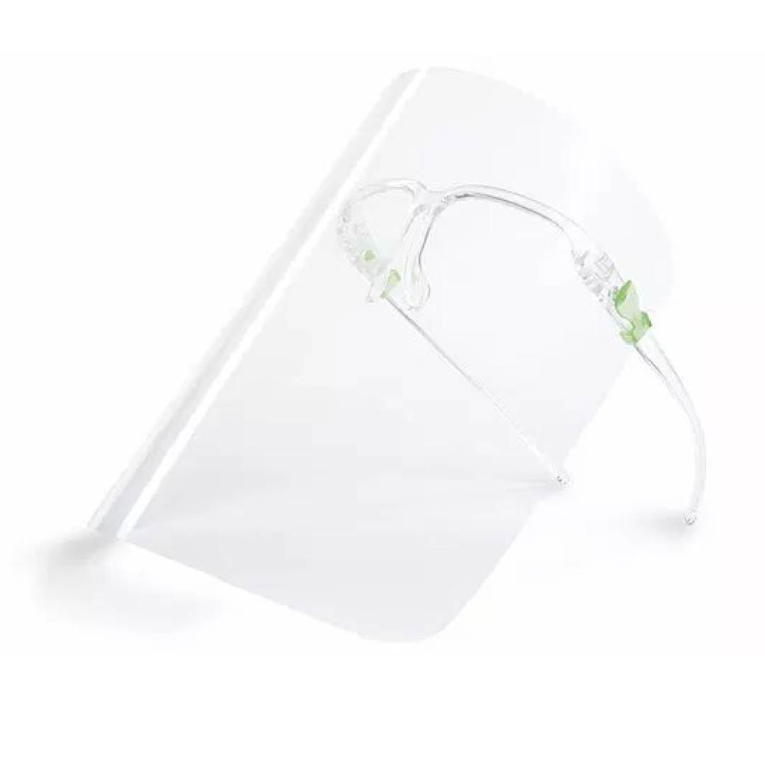 - El diseño presenta marcos acrílicos estilo anteojos para ajustar el protector a su cara.
