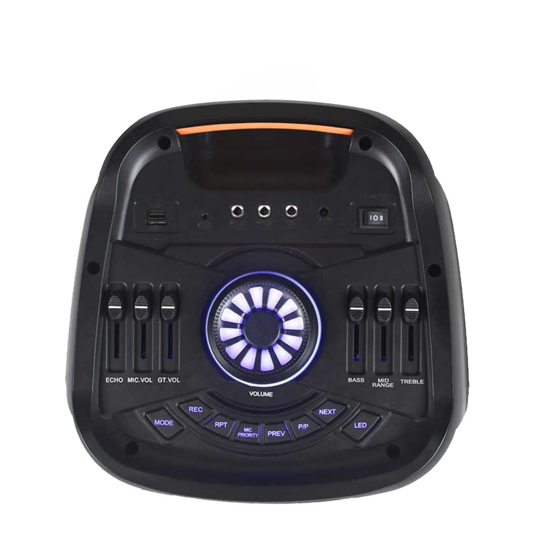 Sus dos subwoofers de 8 pulgadas y su tweeter de bocina de 3 pulgadas de rango completo con amplia dispersión lo hacen ideal para llevar a donde quieras gracias a su batería recargable de litio de 12 V/2400 mAh de larga duración. 2500 vatios/400 W RMS. Sus increíbles luces LED de fiesta cambian de color y vibran al ritmo de la música. La función TWS (estéreo verdaderamente inalámbrico) permite emparejar dos altavoces Altec AL500. Multifunción: Control de eco ideal para karaoke, entrada de guitarra, dos entradas de micrófono, entrada USB y radio FM. Incluye control remoto.