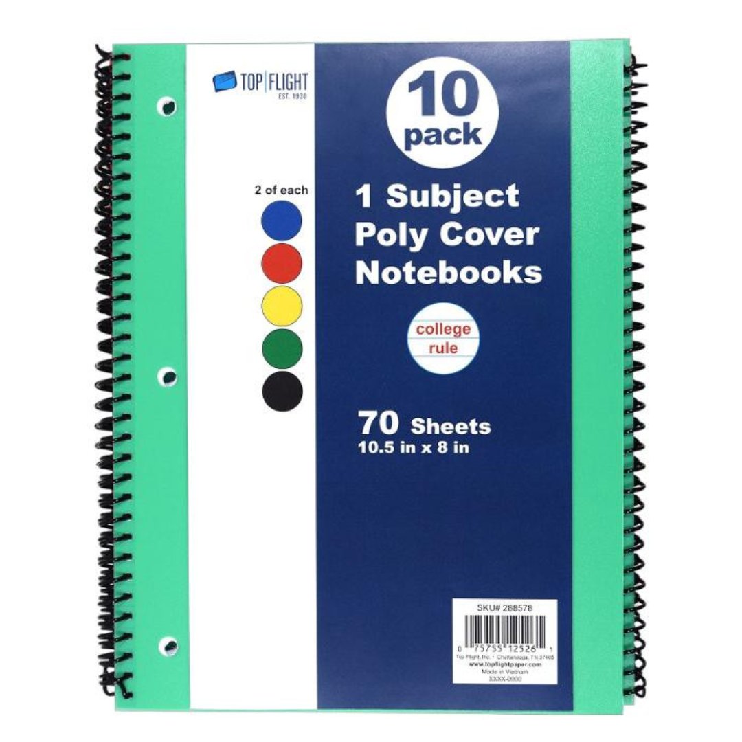 Cuadernos De Tapa Dura De Una Materia Top Flight / 10 Pack / Colores Variados