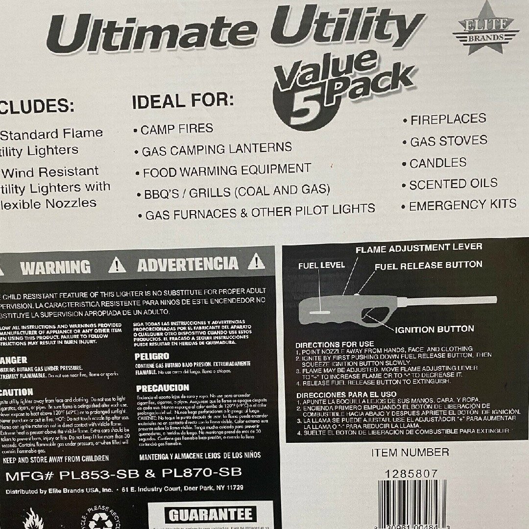 - Incluye: Dos (2)encendedores Utility Plus, un (1) Utility Plus con encendedores de linterna y dos (2) encendedores de cuello flexible.