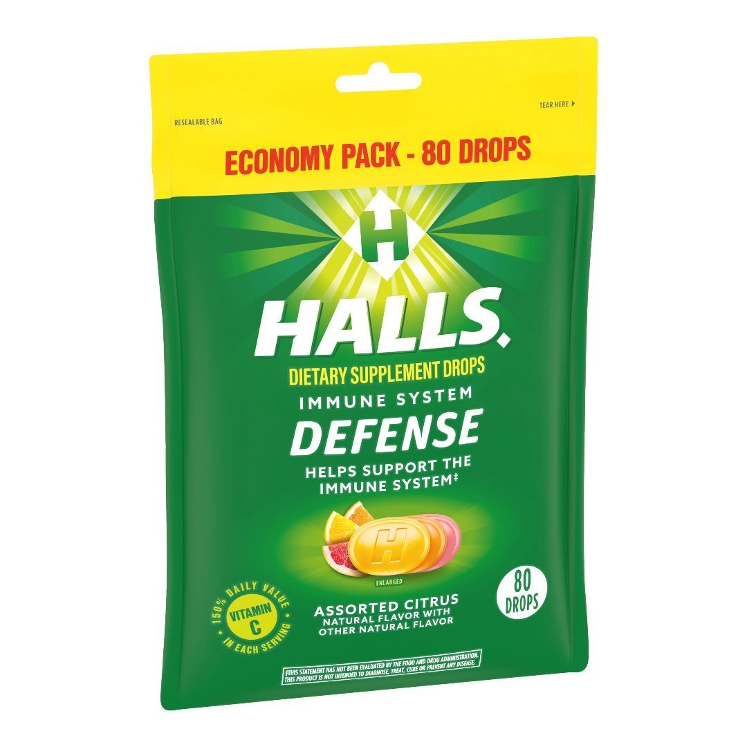 - Un paquete económico de 80 gotas de vitamina C cítricos surtidos de HALLS Defense.
