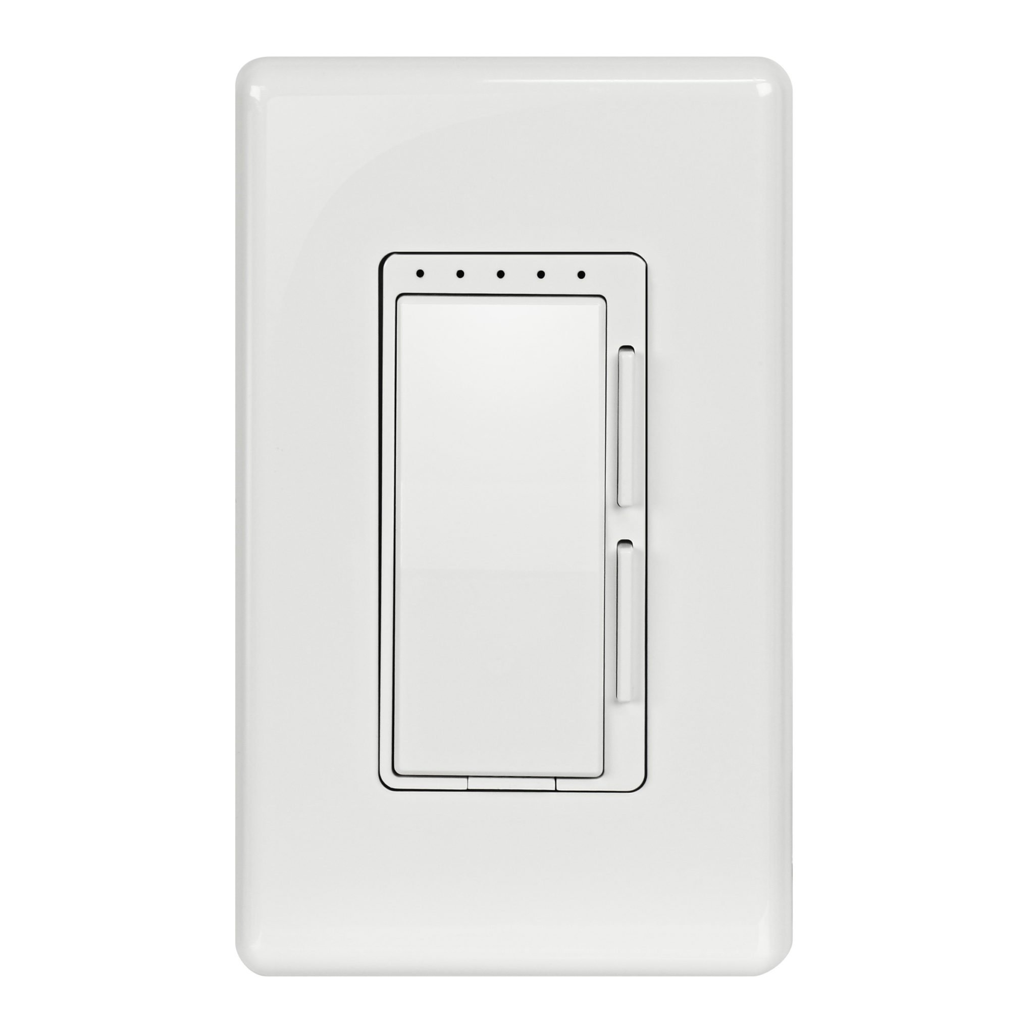 - Agrupe hasta 20 atenuadores inteligentes a través de Wi-Fi, incluso si están en circuitos diferentes. Crea un atenuador maestro para controlar las acciones de los demás. Cada atenuador incluye una placa de pared decorativa sin tornillos con una luz indicadora LED.