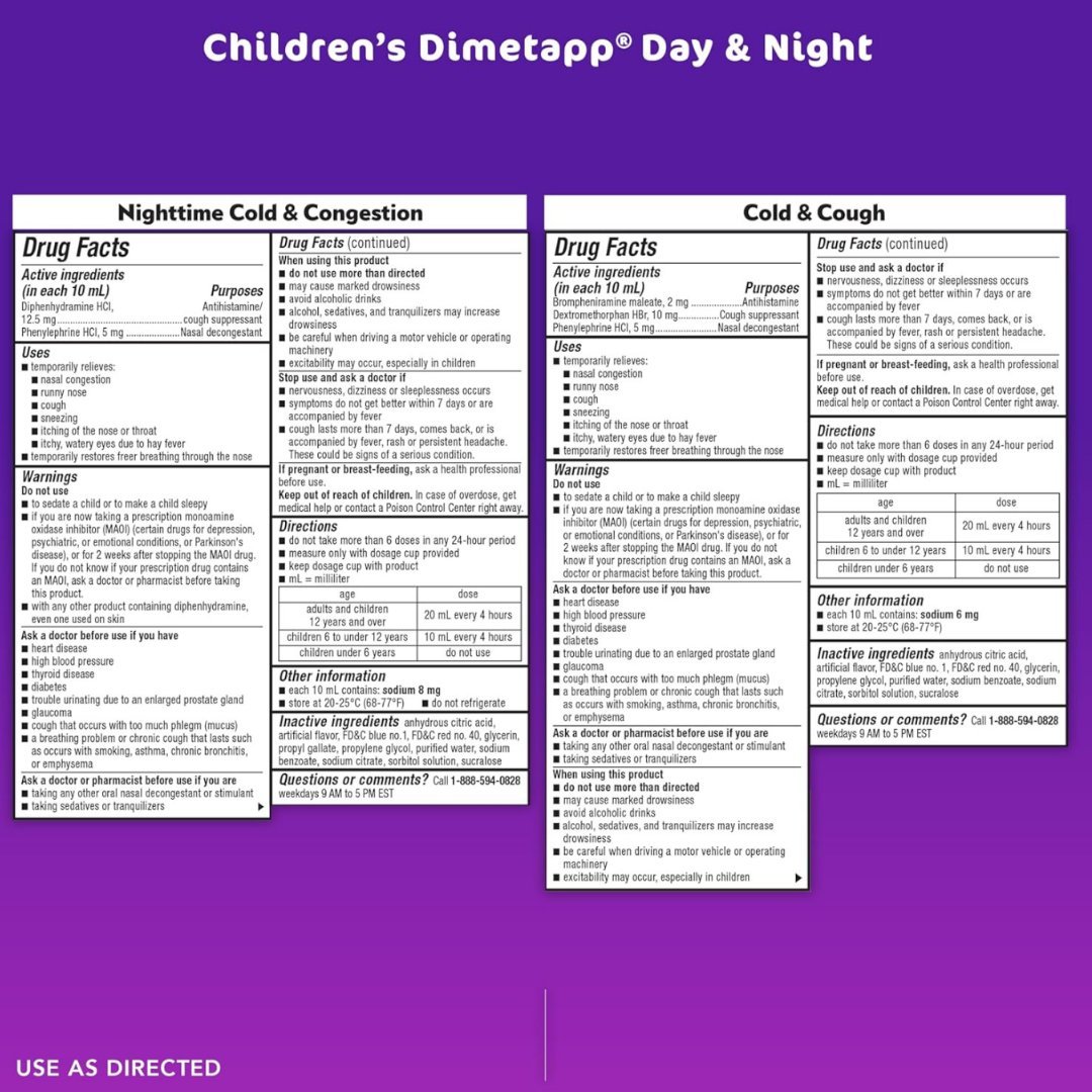 Jarabe Para La Tos Y Gripe Children´s Dimetapp / 1 Pack 118ml Nocturno / 2 Pack 118ml Diurno