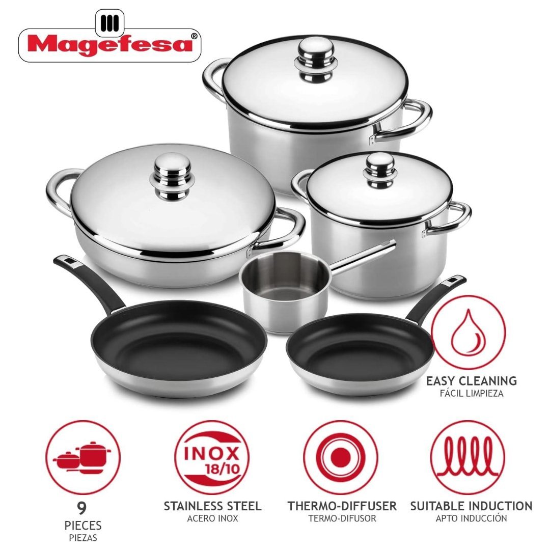 Juego De Ollas Bateria Acero Inoxidable – Magefesa Family 9 / 9 Piezas