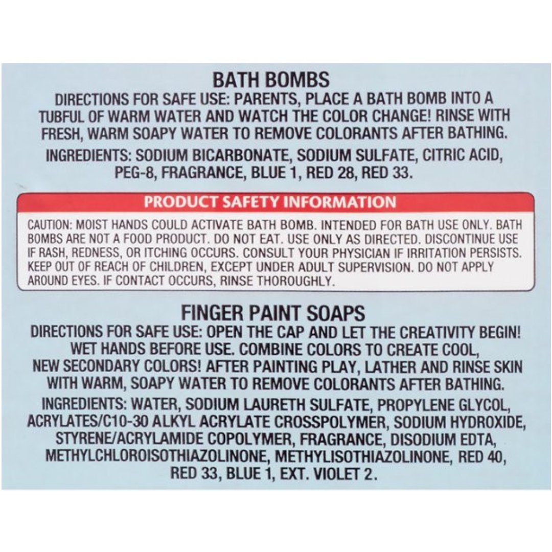 - Incluye jabones para pintar con los dedos, bolígrafos para gel de baño, bombas de baño y más.