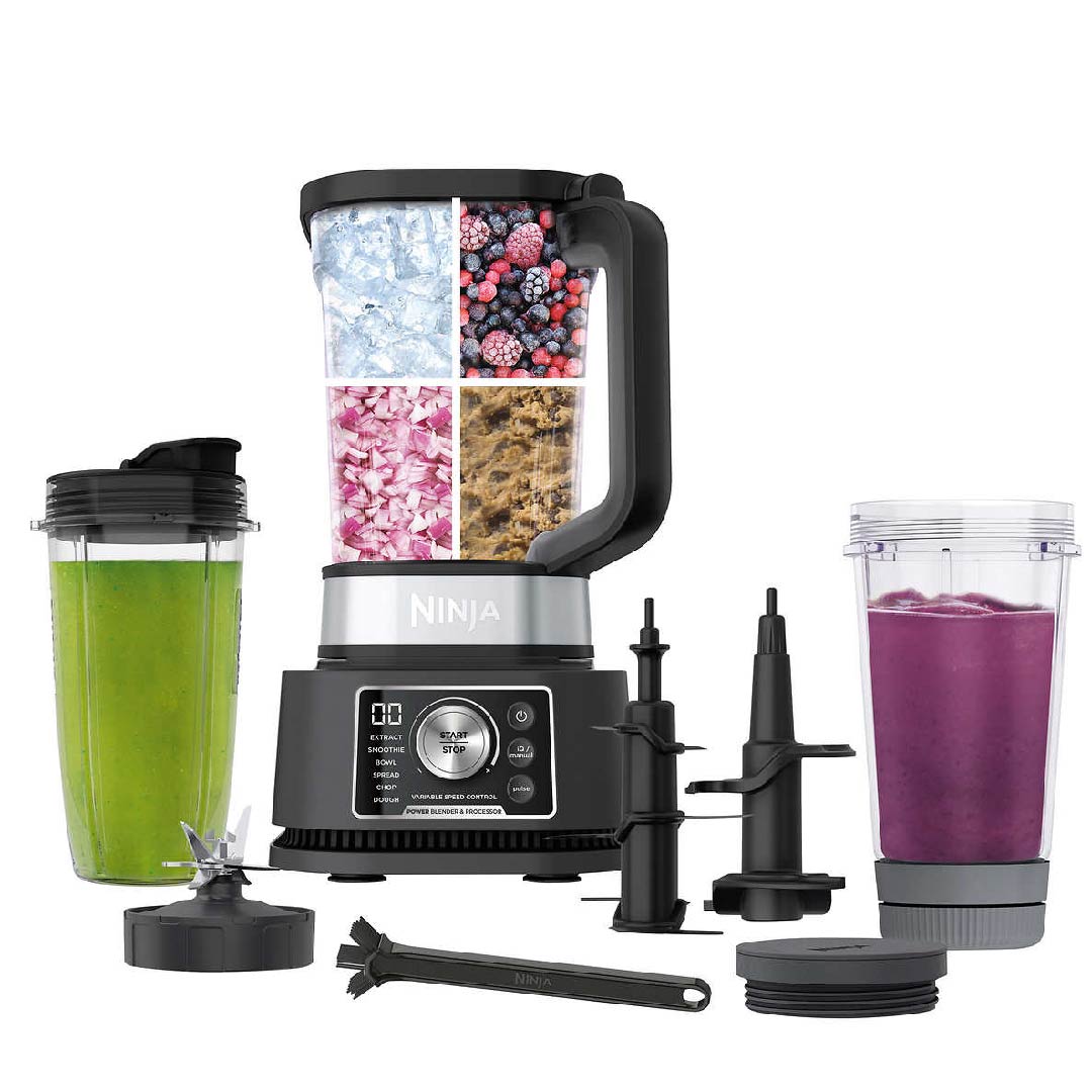 - Incluye: licuadora y jarra procesadora de 72 oz, taza de extracción de nutrientes de 24 oz y batidora de tazones de 14 oz.