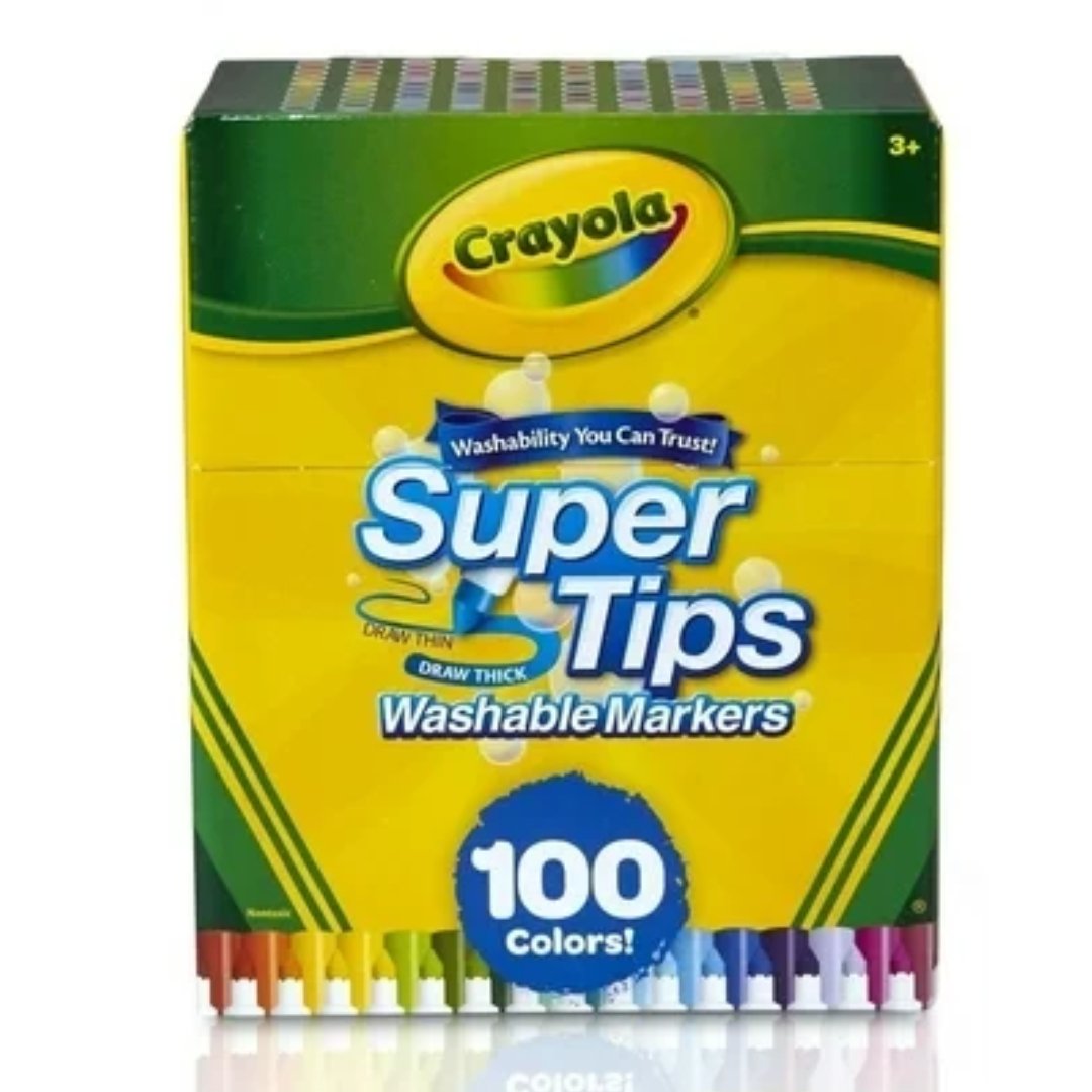 Paquete de 100 marcadores lavables Crayola Super Tips.