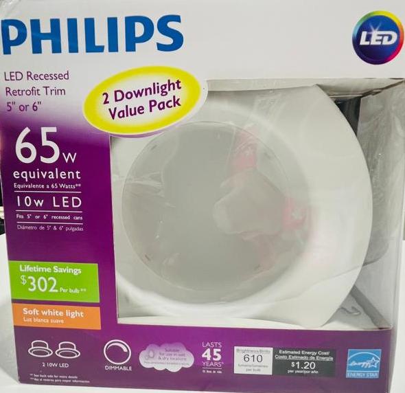 Philips LED Empotrado Retrofit Trim 5″ o 6″ 10w LED Paquete de 2 Downlight