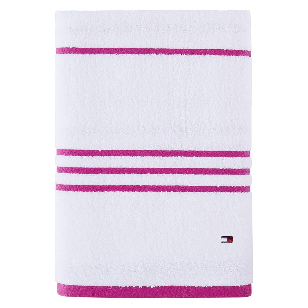 Toalla De Baño De Algodón – Diseño De Rayas Americanas Rosadas – Tommy Hilfiger / 76.20 cm x 1.37 mt