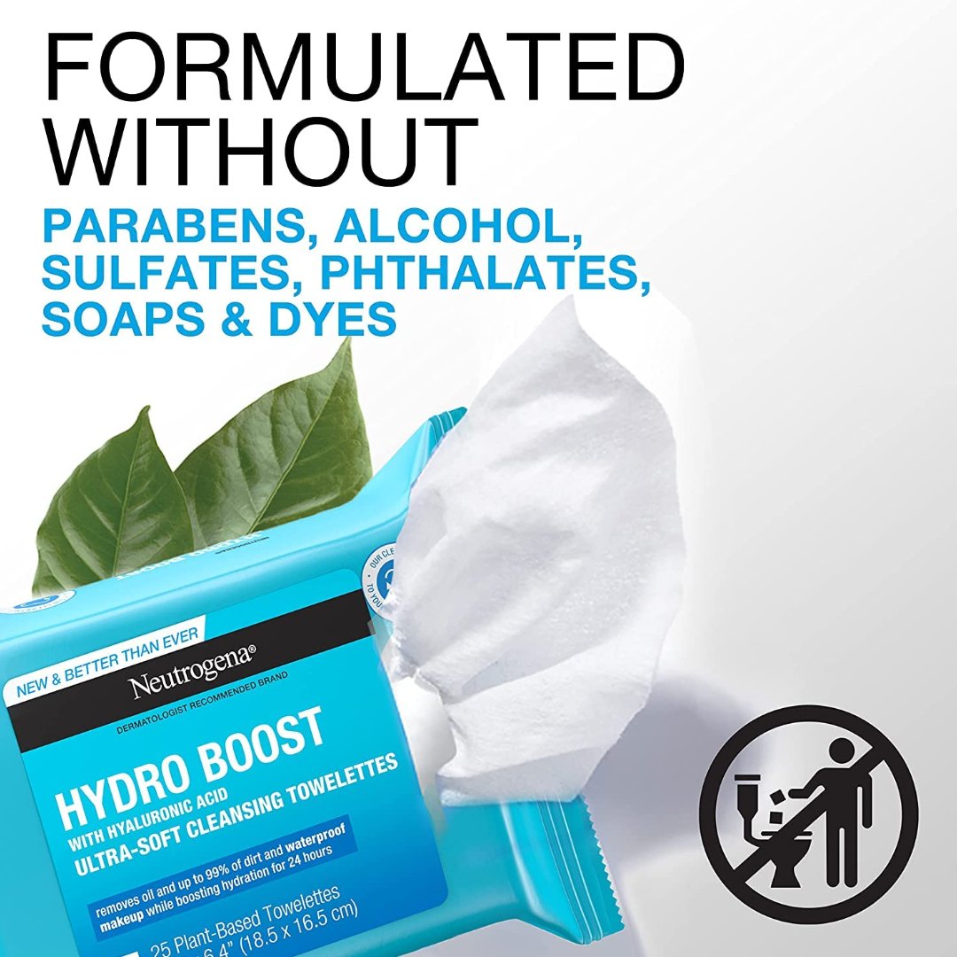 - 1- 25 toallas de limpieza ultra suaves Neutrogena hydro boost.